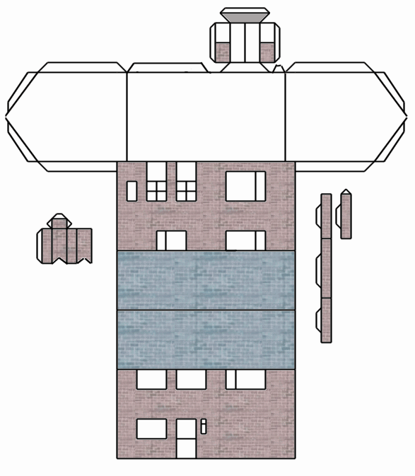 Build a model of the house! - Click on the picture below, then right click on the model that appears and choose "save image as" or "save picture as" to save the model to your computer. Print the model on 160gsm card, then cut it out and glue it together. Happy model building! Note model is not 100% to scale but does represent all the main features of the house.